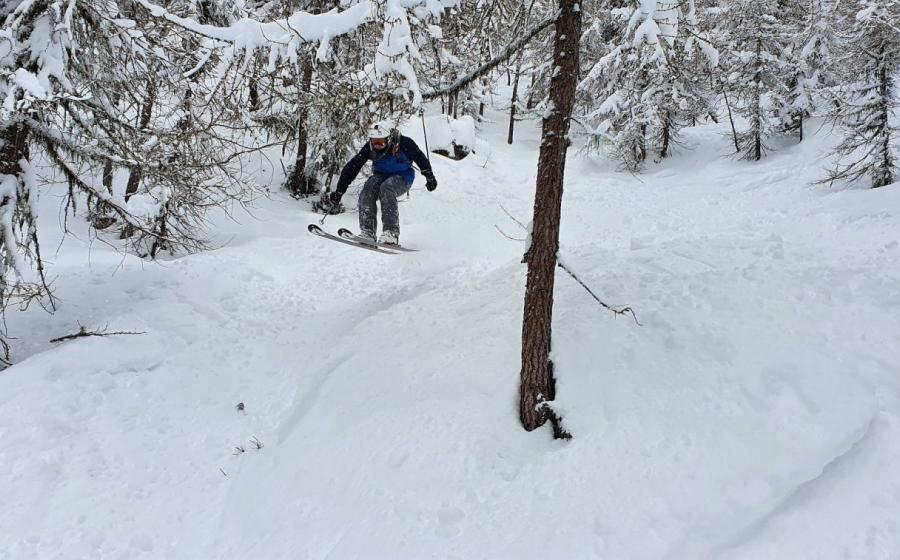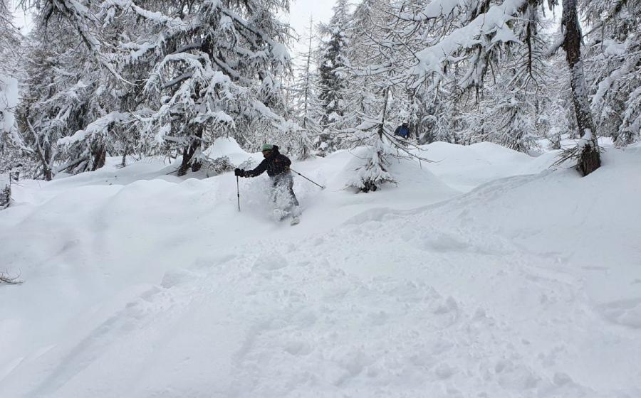 Hors Piste dans la forêt à Chamonix Mont Blanc
