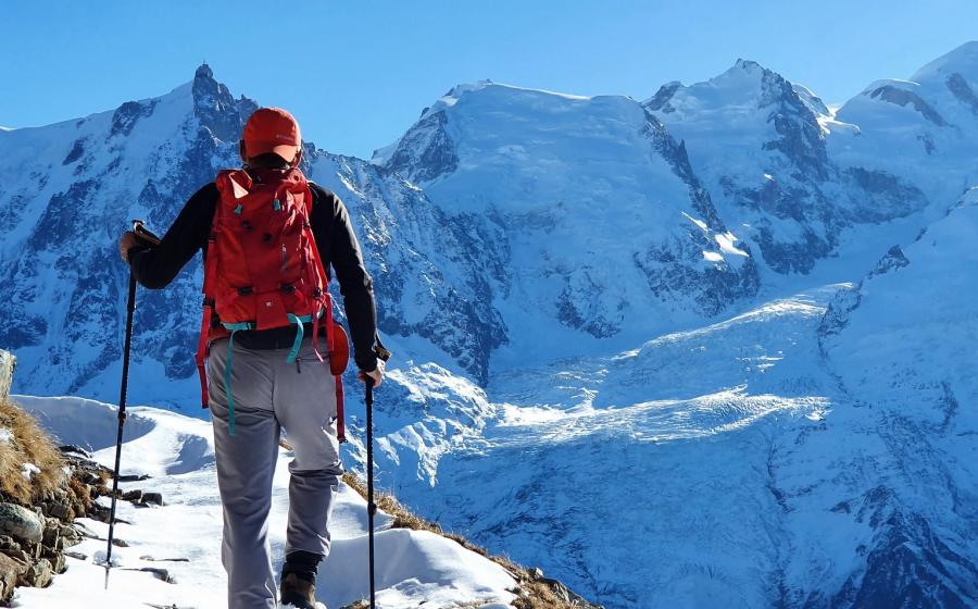Learn cramponing and belaying techniques on a glacier before going into the high mountains.