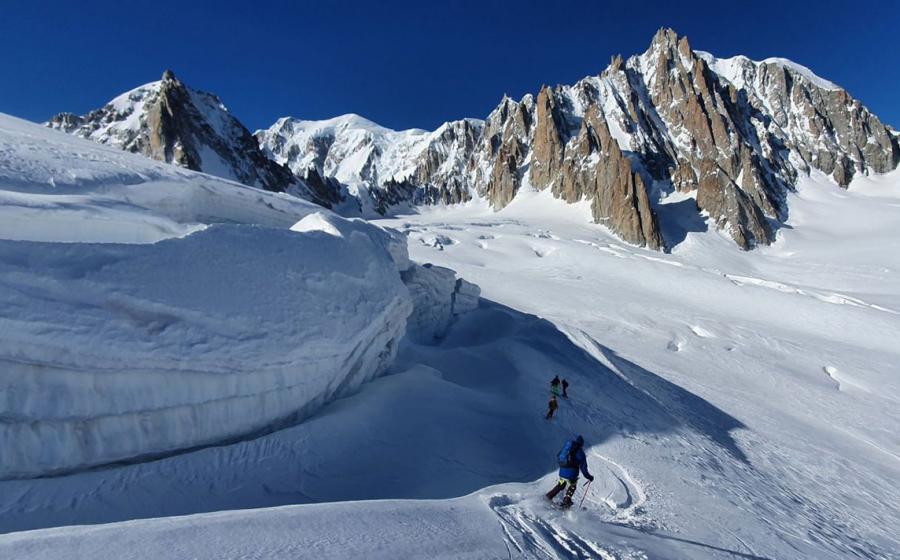 Ski de randonnée dans le secteur de la Vallée Blanche.
